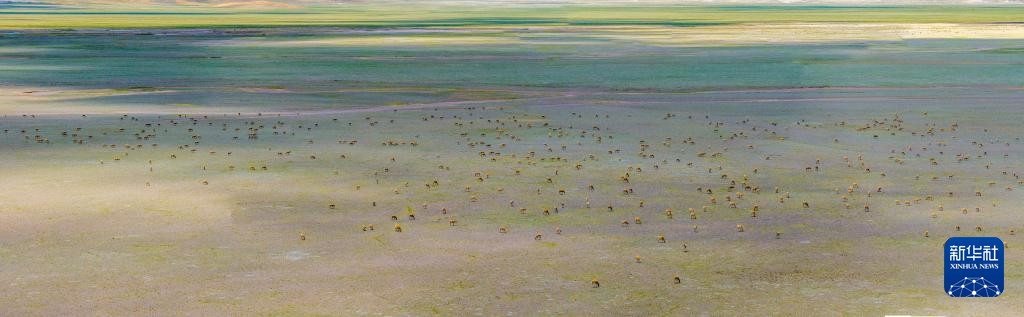 藏羚羊在魯確塘草原集結(無人機照片,6月8日攝)。新華社記者 姜帆 攝??