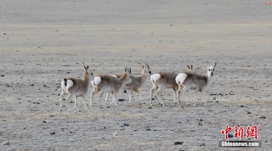 圖為成群藏羚羊在草地上漫步。宗布爾 攝