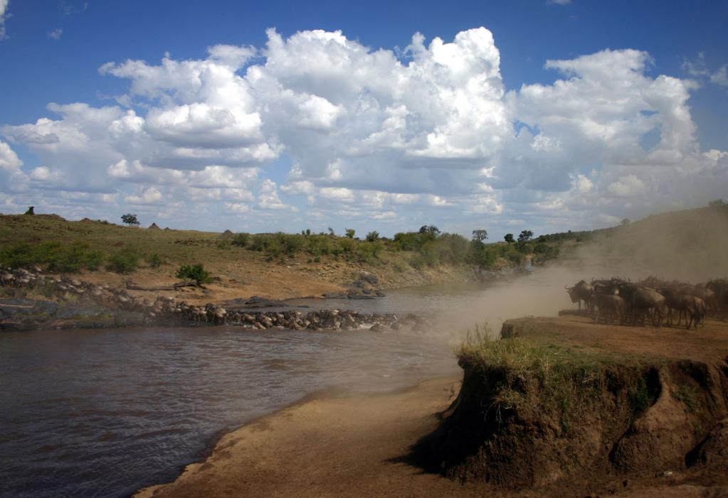 在馬賽馬拉國家保護區,遷徙中的角馬越過馬拉河。馬拉河“生死之渡”是整個大遷徙過程中最為壯觀和驚心動魄的一幕。