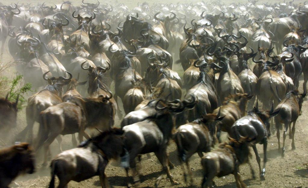 在千里之外的非洲,每年7月至9月,為了追逐水源和青草,數百萬頭角馬、斑馬和羚羊等食草動物組成一支浩浩蕩蕩的遷徙大軍,從坦桑尼亞塞倫蓋蒂國家公園向肯尼亞馬賽馬拉國家保護區遷徙,這就是東非野生動物大遷徙。當數百萬頭野生動物從面積廣闊達數萬平方公里的塞倫蓋蒂,遷徙到僅有不到2000平方公里的馬賽馬拉的時候,遷徙達到高潮。