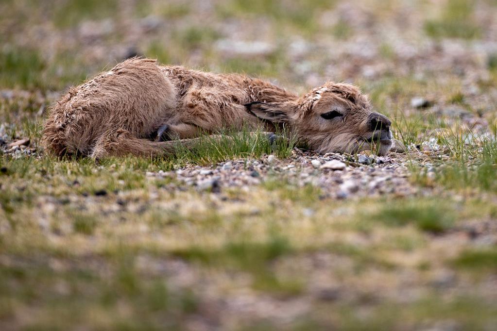 2024年6月17日,羌塘國家級自然保護區境內的西藏那曲市申扎縣買巴鄉魯確塘草原上一只剛出生不久的小藏羚羊。