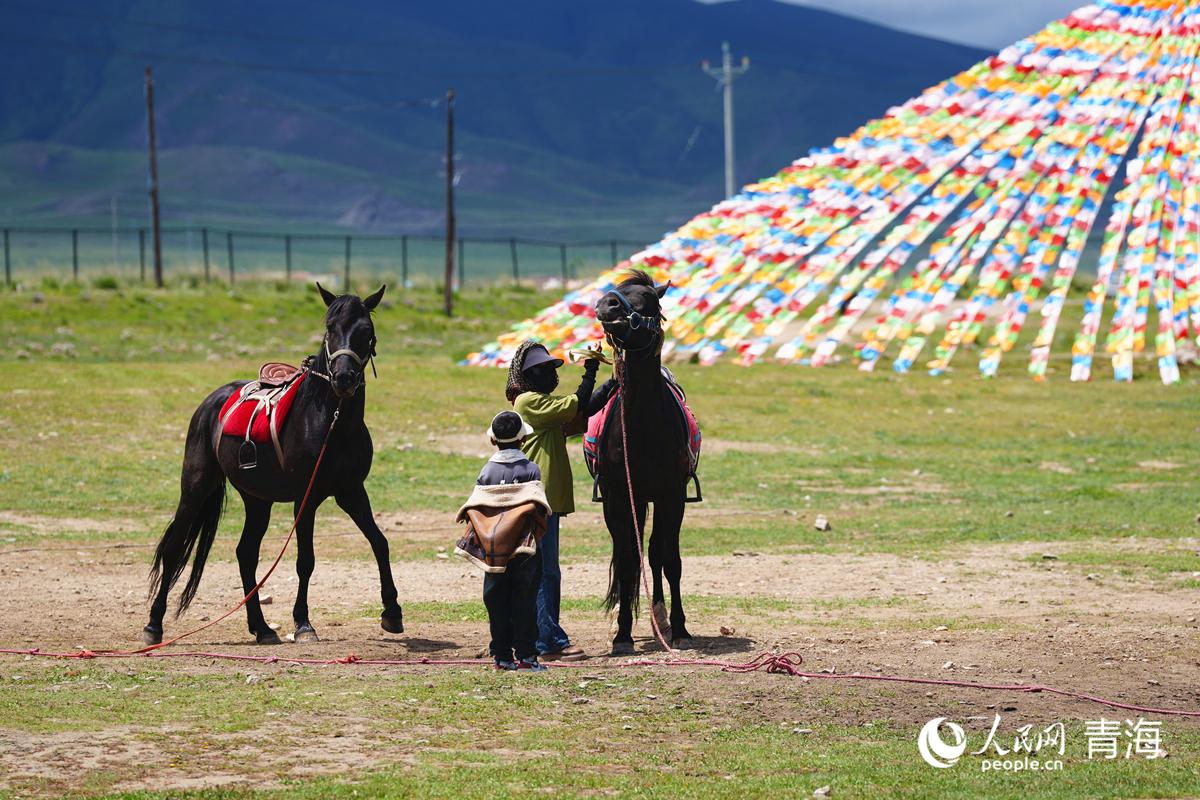 牦牛群旁邊的草地上,十幾匹駿馬或是載著游客慢走,或是配合游客拍照,騎馬體驗也很受歡迎。