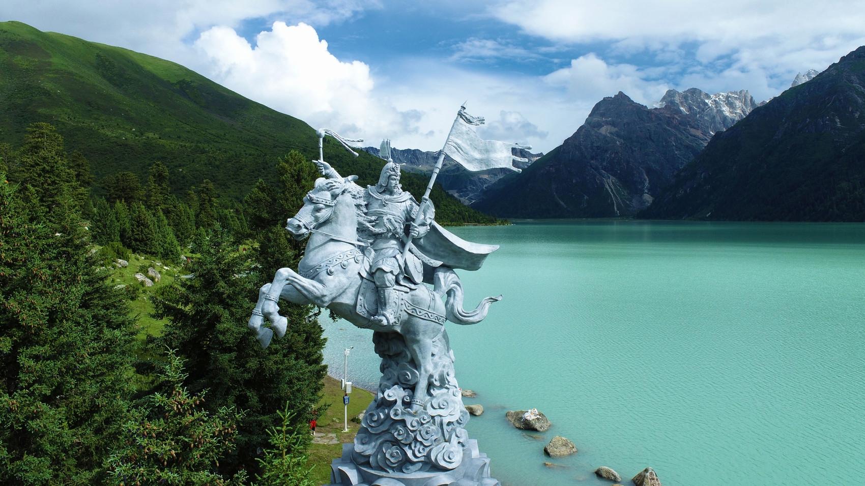 景區矗立的格薩爾王雕塑。景區供圖