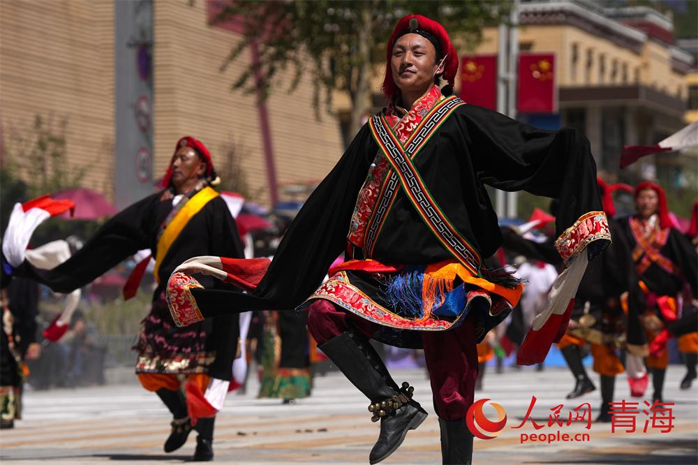 巡演現場,玉樹馬術方隊、康巴漢子方隊、伊舞方隊、藏族彈唱方隊、格仲服飾方隊、游牧方隊、玉樹州非物質文化遺產傳承人方隊等輪番登場,形式多樣的非遺展演為廣大游客和當地群眾帶來了一場視覺盛宴。