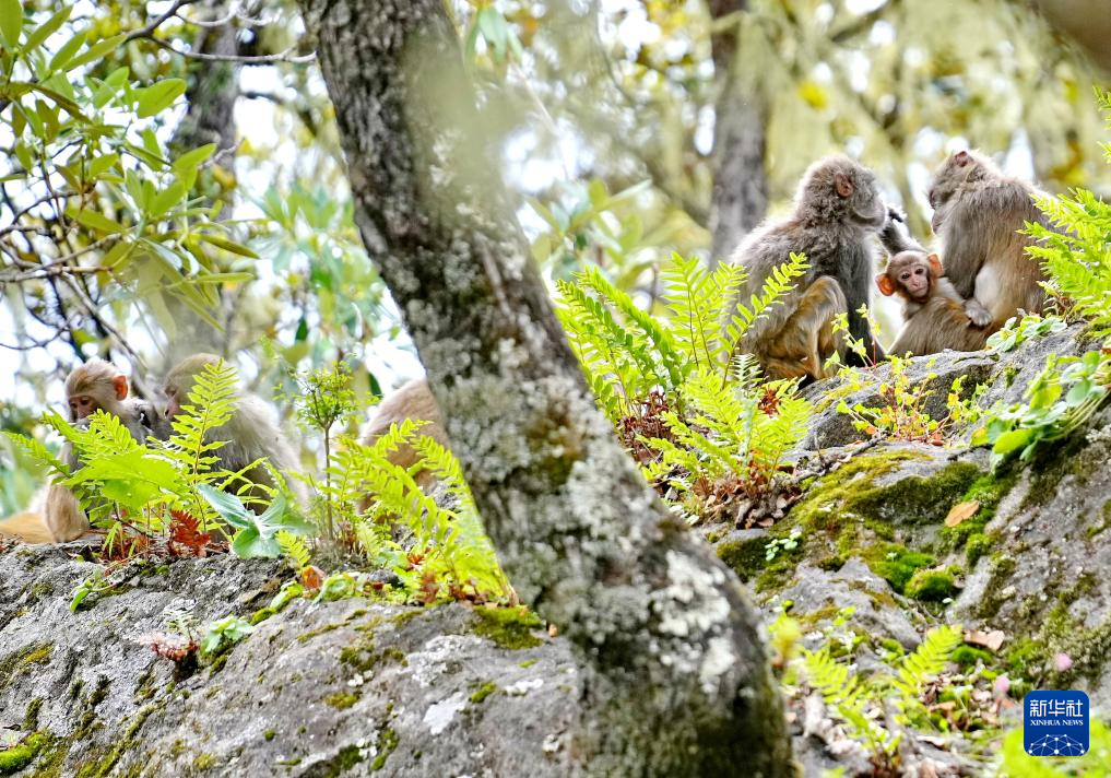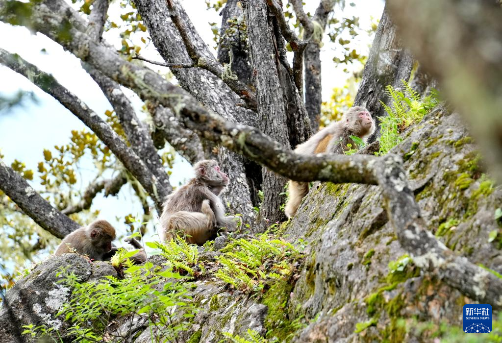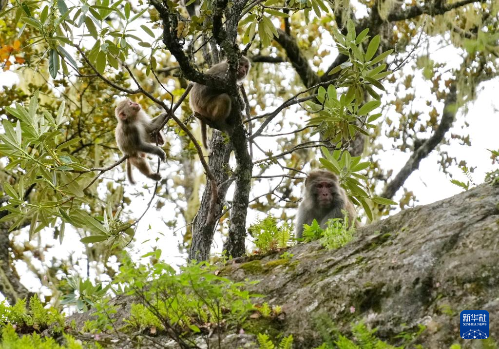 巴松措旅游風景區里的藏獼猴(8月2日攝)。新華社記者 張汝鋒 攝