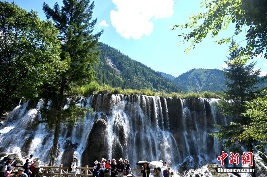 圖為游客在九寨溝景區拍照留念。中新社記者 安源 攝
