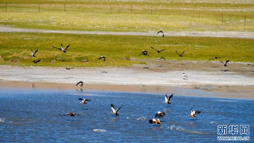首頁 / 圖庫 / 攝影作品 / 正文 西藏申扎:“高原翡翠”錯鄂湖 來源 : 新華網 作者 : 謝炆圻 發布時間 : 2024-08-30 字體 :小 中 大 錯鄂湖景色(8月25攝)。新華網發 謝炆圻 攝錯鄂湖,位于西藏自治區那曲市申扎縣境內,棲息著許多鳥類。湖面顏色由遠及近由藍變綠,宛如一塊巨大的天然綠翡。在湖邊游玩的游客(8月25攝)。新華網發 謝林翰 攝錯鄂湖附近棲息的赤麻鴨(8月25攝)。新華網發 謝炆圻 攝 編輯 : 拉專措