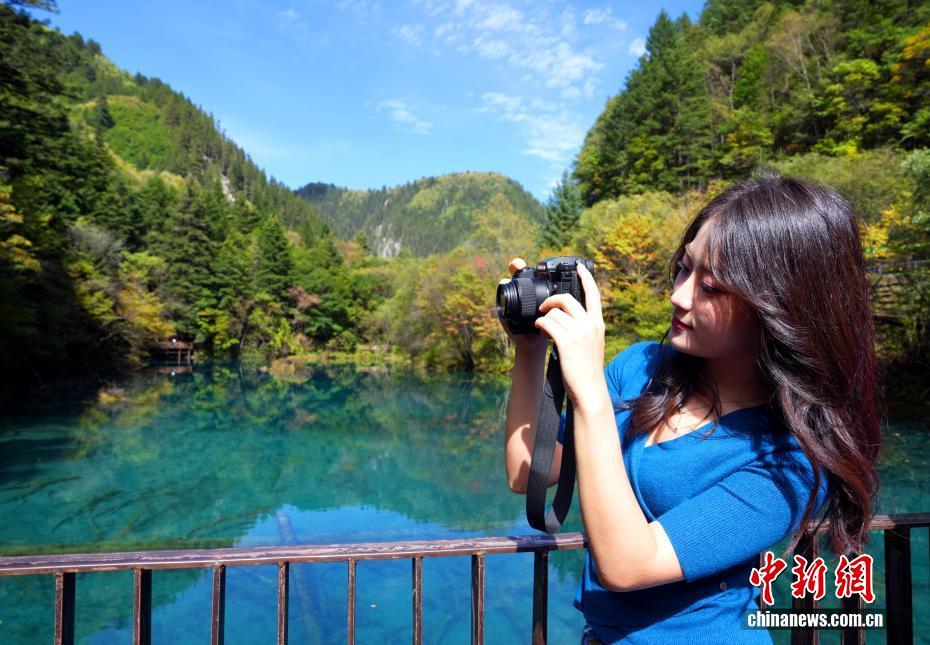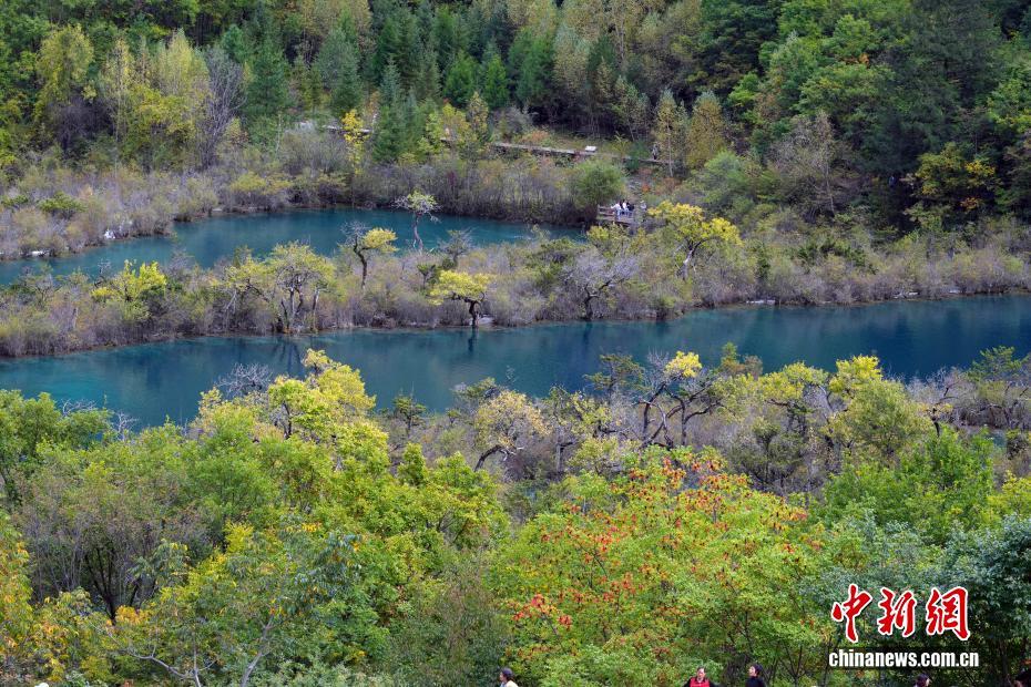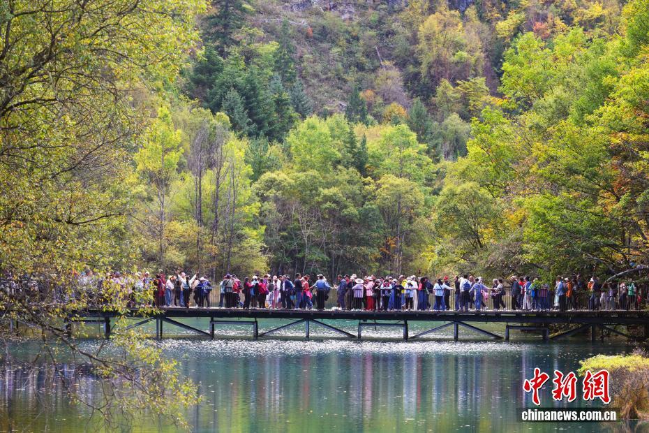 10月13日,世界自然遺產地九寨溝景區秋景如畫,吸引眾多游客觀光游玩。