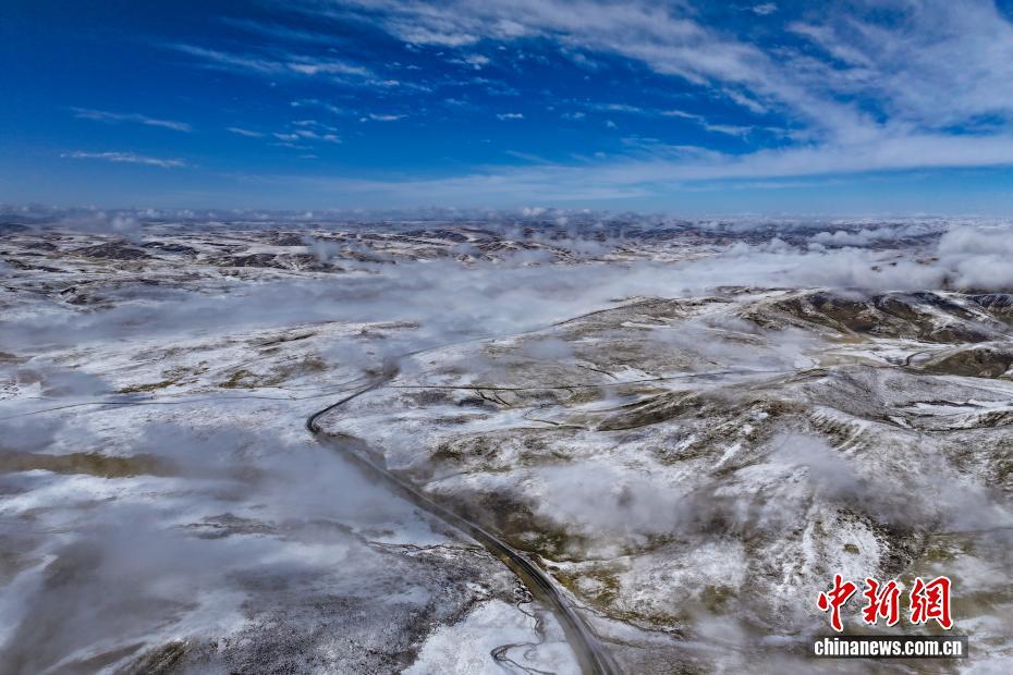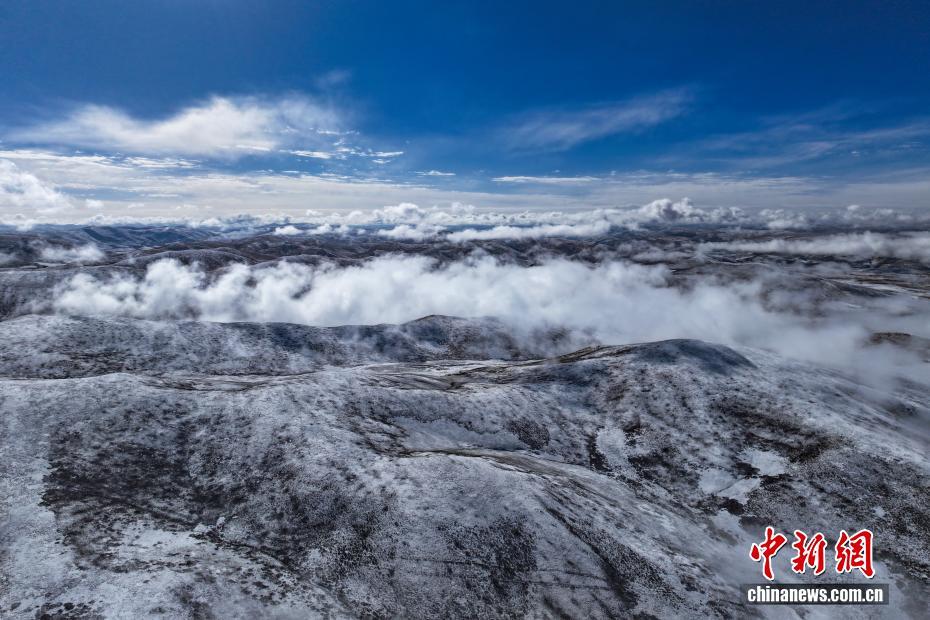 10月17日,一場降雪過后,平均海拔4200米以上的青海省果洛藏族自治州達日縣出現云海景觀,從空中俯瞰,落雪的山巒在云霧中若影若現,宛如壯闊水墨畫卷。