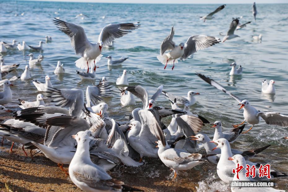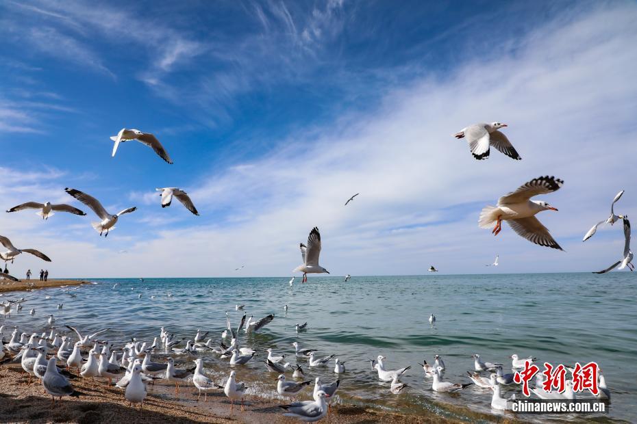 10月22日,青海省海南藏族自治州共和縣青海湖畔,水鳥成群。中新社記者 馬銘言 攝