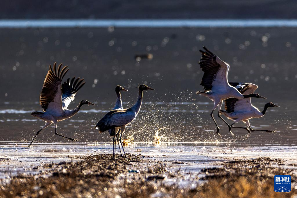 冬日時節,拉薩市林周縣迎來大批越冬候鳥,黑頸鶴、斑頭雁、赤麻鴨等候鳥在河谷、湖泊等地覓食、休憩。