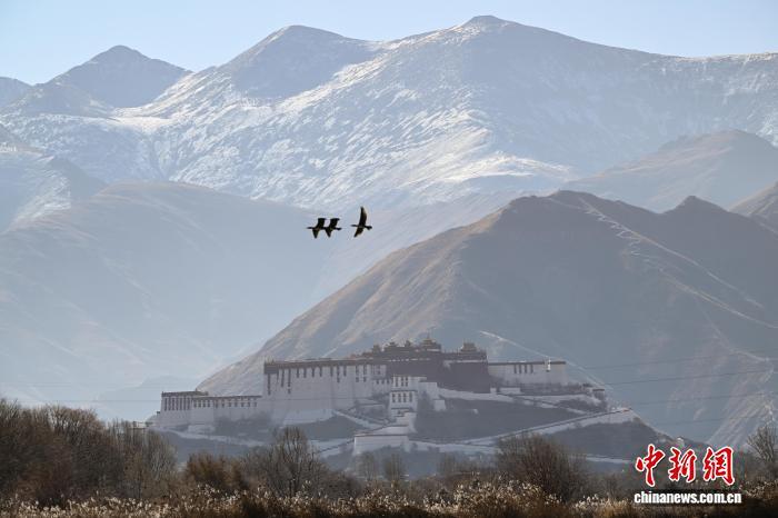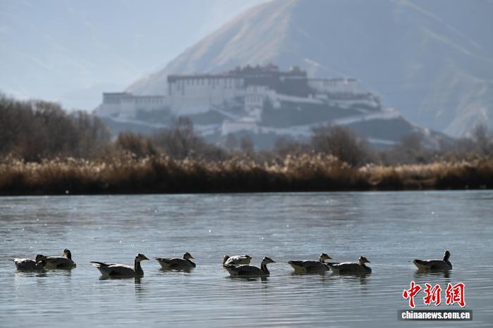 2025年12月9日,世界海拔最高的城市內陸天然濕地——拉薩拉魯濕地國家級自然保護區盡顯冬日盛景。這片總面積12.2平方公里的“拉薩之肺”,初冬時節蘆葦泛金,赤麻鴨、斑頭雁等候鳥在此嬉戲覓食。遠處布達拉宮巍然矗立,周邊雪山皚皚,自然生態與人文景觀交相輝映,構成一幅兼具壯闊與靈動的高原畫卷,彰顯著拉薩人與自然和諧共生的生態之美。圖為拉薩市民在拉魯濕地晨練。中新社記者 貢嘎來松 攝