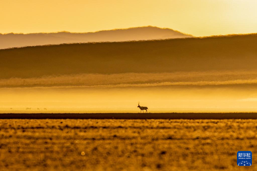 羌塘國家級自然保護(hù)區(qū)的一頭雄性藏羚羊沐浴在晨光中(12月4日攝)。新華社記者 姜帆 攝