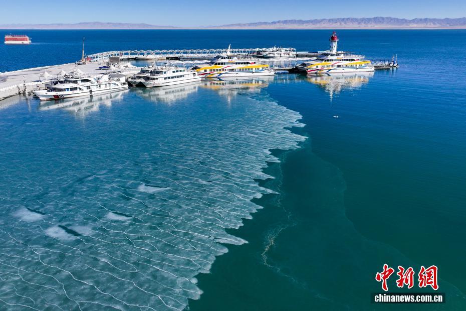 12月16日,青海省海南州,冬日青海湖冰推景觀吸引游客駐足拍照,定格“高原藍(lán)寶石”冬日美景。圖為航拍青海湖冰推景觀。(無人機(jī)照片)中新社記者 薛蒂 攝