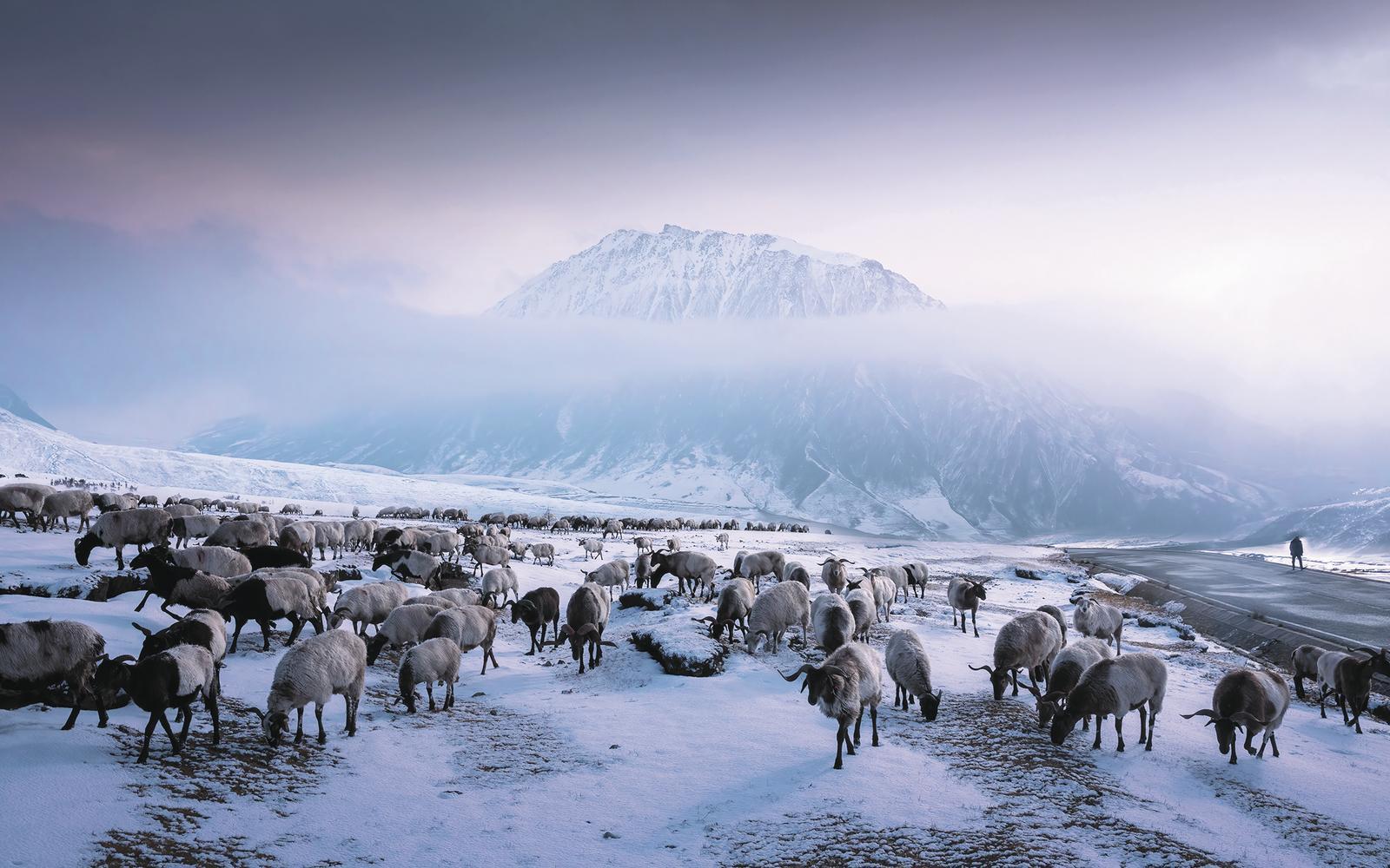 雪山晨牧。 李玉清 攝