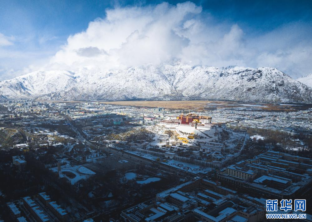 1月18日拍攝的雪后拉薩(無(wú)人機(jī)照片)。新華網(wǎng) 旦增努布 攝