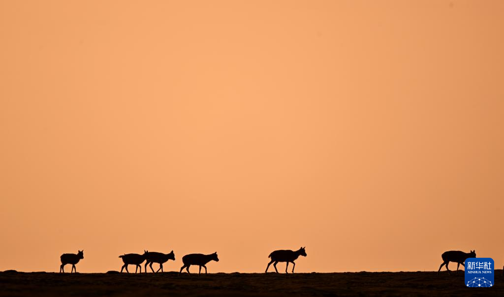 一群藏羚羊在可可西里卓乃湖區域活動(2023年6月18日攝)。新華社記者 張宏祥 攝