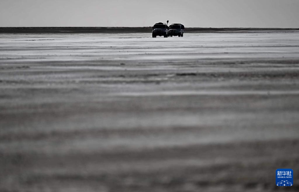 簡單休整后,巡山隊開始了對卓乃湖區域的日常巡護。可可西里遍布湖泊,在卓乃湖附近巡護,車輛不得不在冰凍的河灘上緩慢行進。