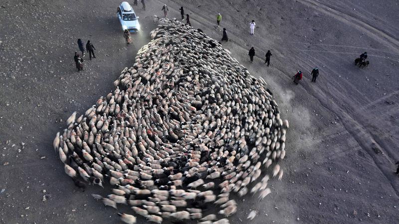 “每年趕羊前10天,村里家家戶戶都會開始準備爐灰,爐灰是用來撒在冰面上防止羊群摔倒。”旺堆說。雖然提前撒好了防止羊群打滑的爐灰,但還是會有頻繁打滑摔跟頭的羊,此時牧羊人就會扶它們起來,或背或抱,把它們送到目的地。
