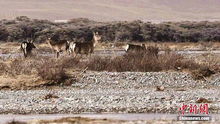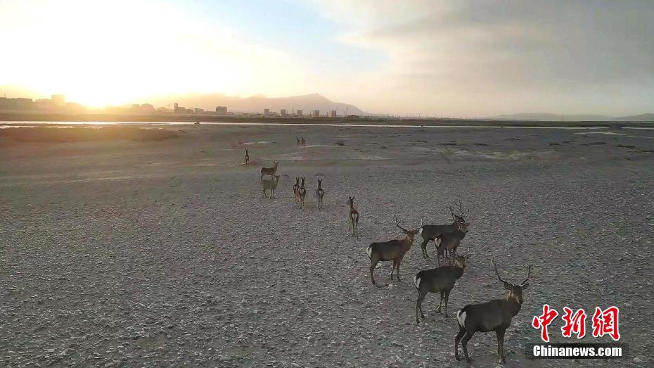 近日,攝影愛好者在青海省海西蒙古族藏族自治州天峻縣城區的布哈河畔,拍攝到一群野生馬鹿種群。據粗略統計,該種群馬鹿40余只,距離最近的住宅小區僅400米左右。馬鹿是一種體型較大的鹿種,是國家二級保護動物,通常生活在較為偏遠的山區高原。隨著生態環境的持續優化,青海湖最大補給河布哈河流域的生物多樣性持續增加。當地民眾環保意識的增強,也讓野生動物不再隱居深山,逐漸變得“親民”。