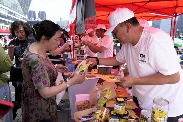 推介會上的土特產吸引了眾多市民的目光。新華網 吳曉 攝