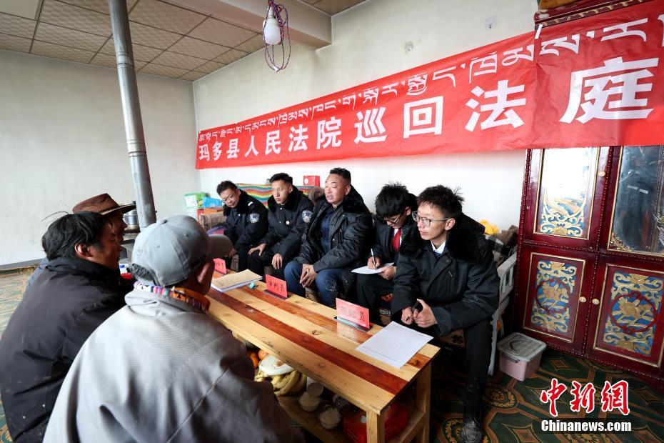 瑪多縣地處黃河源頭,是黃河發源后流經的第一個縣城。瑪多平均海拔超4500米,是青海省海拔最高的縣,也是人類生存環境最惡劣的地區之一,加上地廣人稀,交通不便,法官調查取證難、送達難,農牧民參與訴訟難。1957年,瑪多縣人民法院成立之初就成立了“馬背法庭”。巡回法庭的的法官經常帶著干糧,騎著馬找到當事人,就地審理案件。