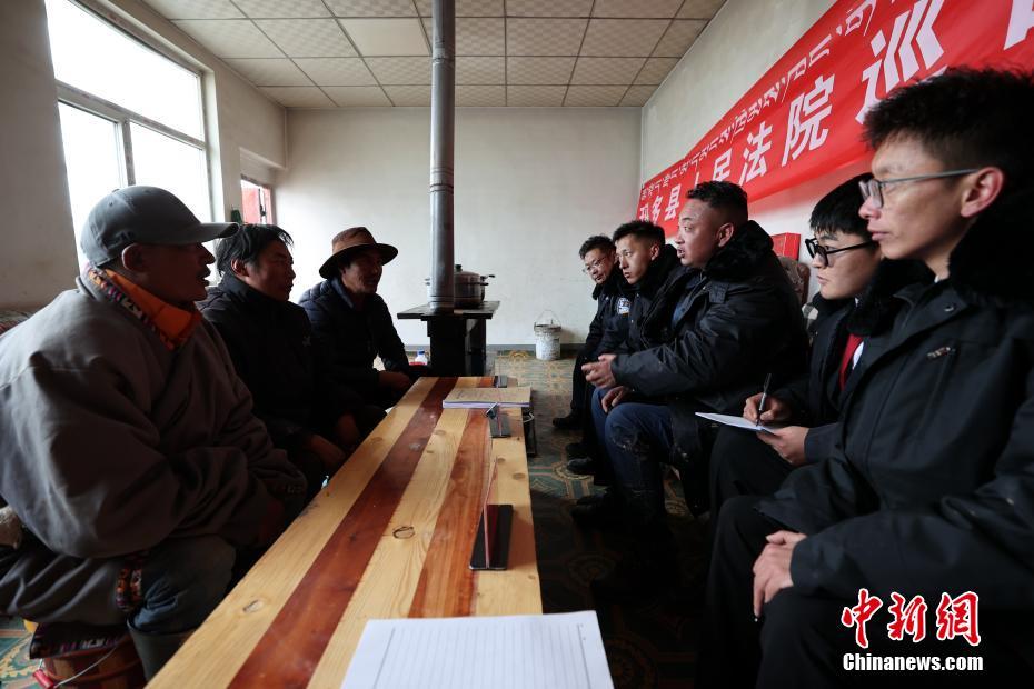 6月3日,在青海省果洛藏族自治州瑪多縣花石峽鎮,瑪多縣人民法院“馬背法庭”的法官在牧民家中進行訴前調解。薛蒂 攝