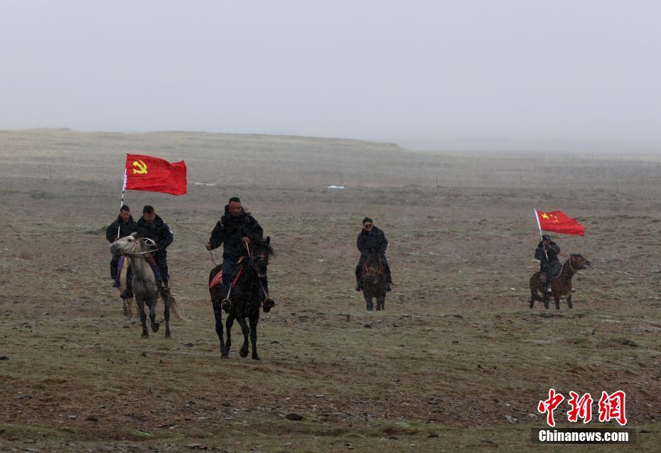 6月3日,在青海省果洛藏族自治州瑪多縣花石峽鎮,瑪多縣人民法院“馬背法庭”的法官頂風前往牧民家中進行訴前調解。薛蒂 攝