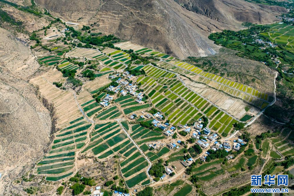 6月23日在西藏山南市乃東區(qū)境內(nèi)拍攝的田園風光(無人機照片)。新華網(wǎng) 旦增努布 攝