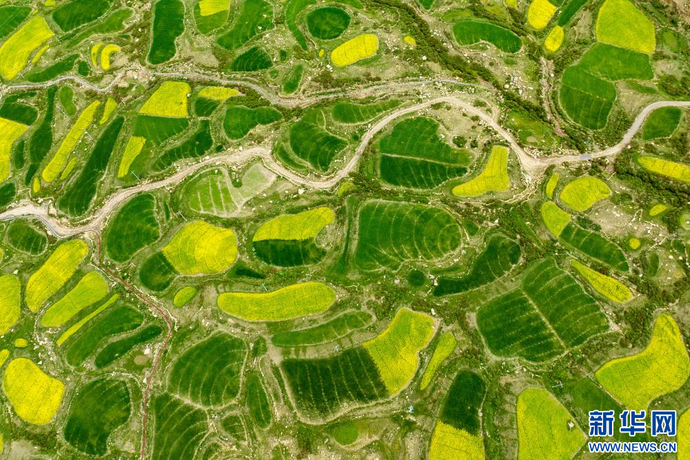 6月21日在西藏山南市乃東區(qū)境內(nèi)拍攝的田園風光(無人機照片)。新華網(wǎng) 旦增努布 攝