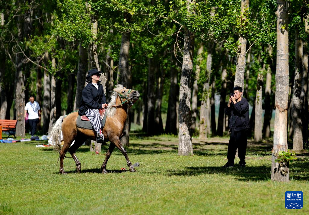 7月14日,當(dāng)杰村村民在“神秘樹(shù)林”藏嘎騎馬樂(lè)園里休閑。新華社記者 張汝鋒 攝