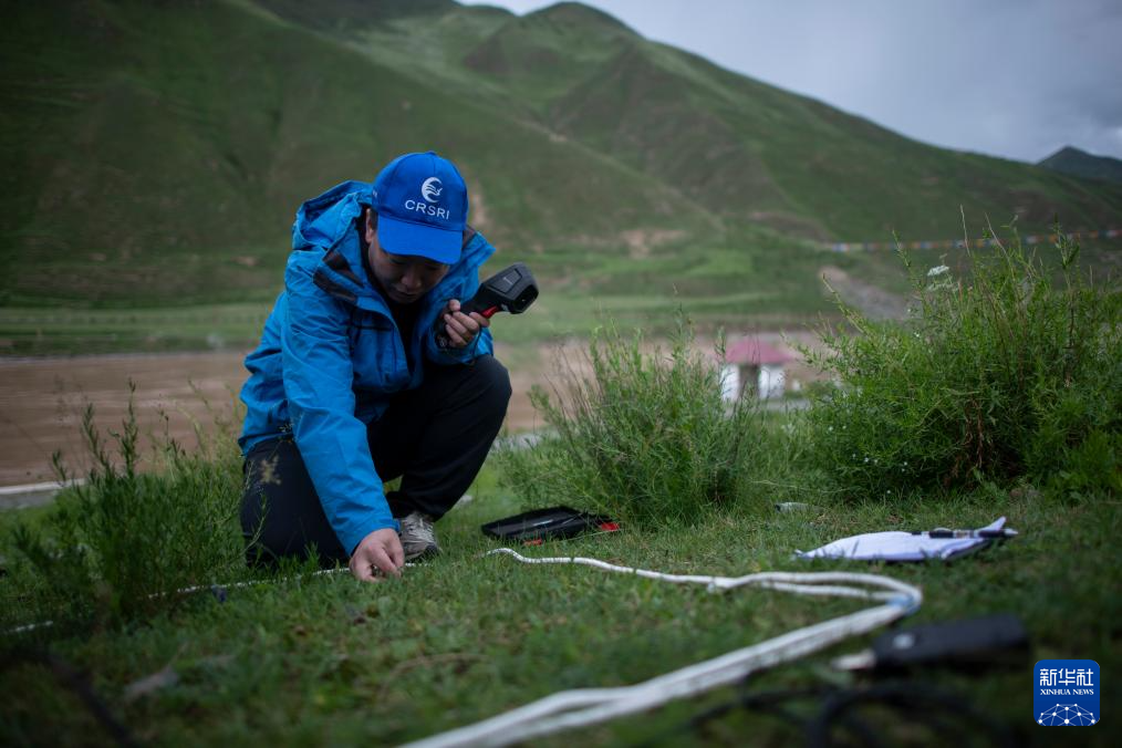 7月20日,在直門達水文站,長江科學院水土保持研究所任斐鵬在進行植被生態和水土流失調查。新華社記者 伍志尊 攝