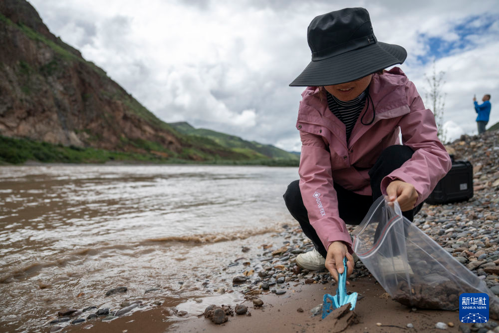 7月21日,長江科學(xué)院河流研究所的劉玉嬌在囊謙香達(dá)河段采集樣品。新華社記者 伍志尊 攝