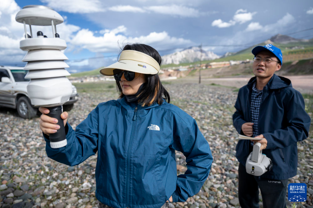 7月23日,長江科學(xué)院水資源綜合管理研究所的程淑婕在通天河曲麻萊河段測量土壤溫濕度。新華社記者 伍志尊 攝