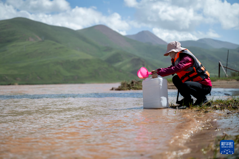 7月23日,青海省水文水資源測報(bào)中心的馬蕊在聶洽曲進(jìn)行水樣采集工作。新華社記者 伍志尊 攝