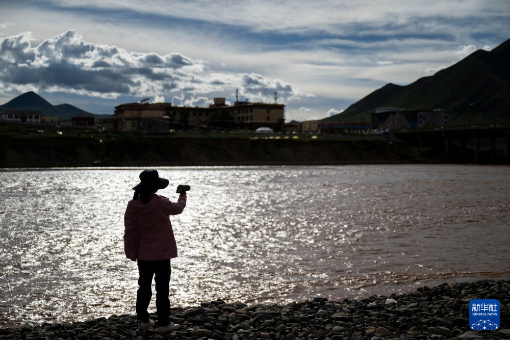7月23日,長江科學(xué)院河流研究所的劉玉嬌站在聶洽曲的草灘上。新華社 杜笑微 攝