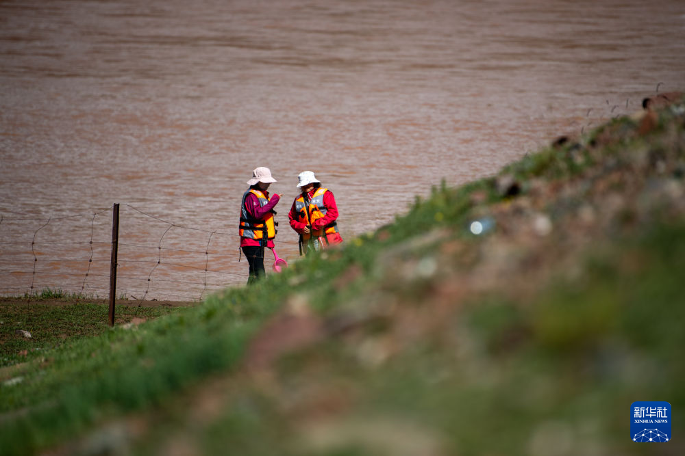 7月21日,在囊謙香達(dá)河段,長江科學(xué)院水資源綜合管理研究所的程淑婕(右)在工作中。新華社記者 伍志尊 攝
