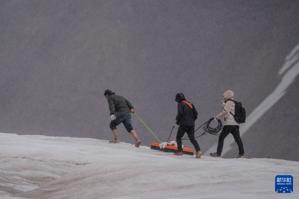7月25日,在冬克瑪底冰川,科考隊員準備攀爬冰川。新華社發(杜笑微 攝)