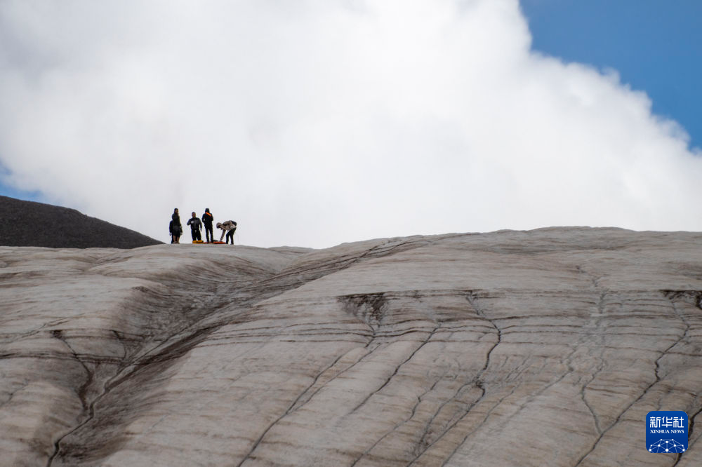 7月25日,在冬克瑪底冰川,科考隊員在探測冰川。新華社記者 伍志尊 攝