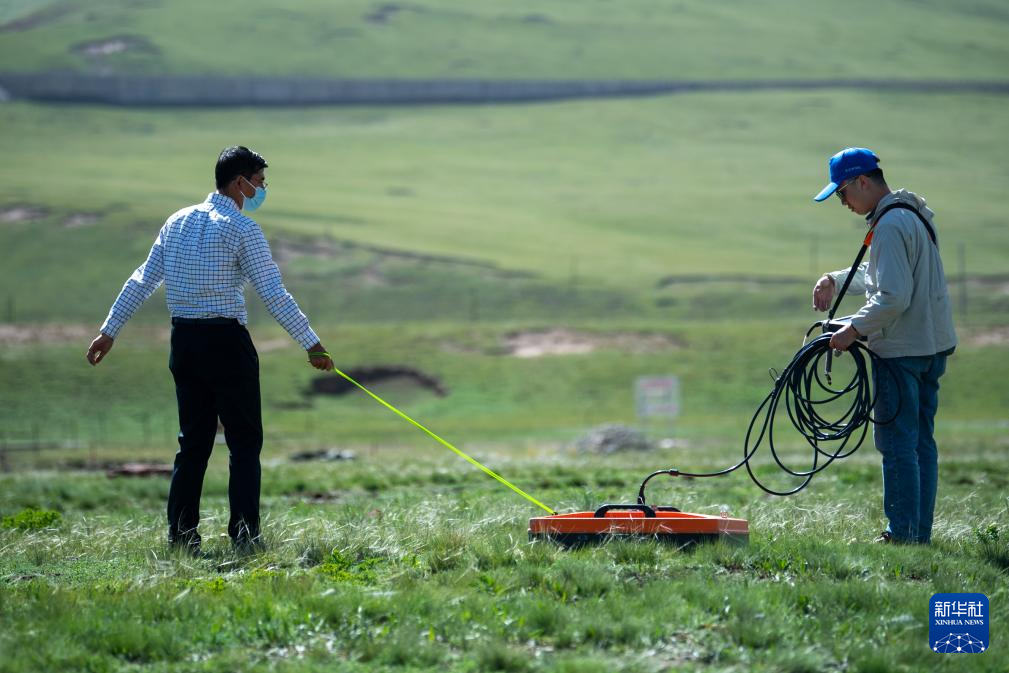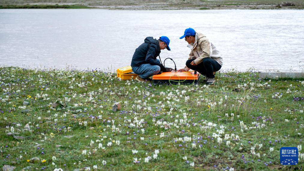 7月23日,科考隊員在治多聶洽曲進行地下水水位測量。新華社記者 潘彬彬 攝