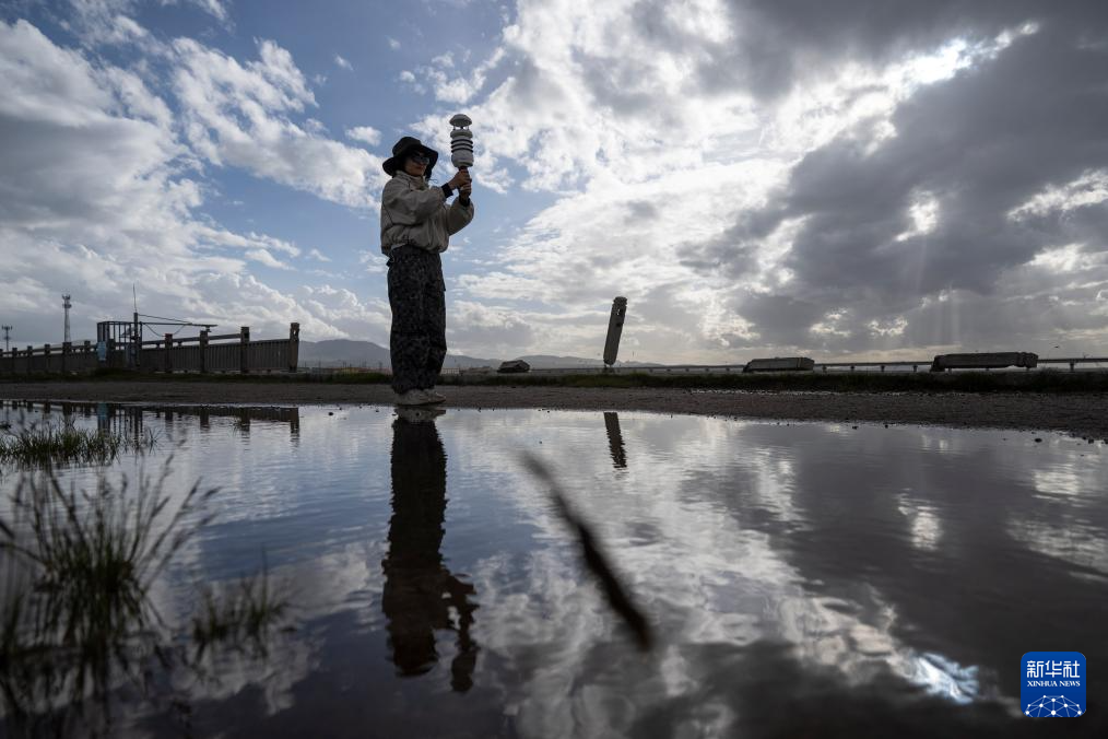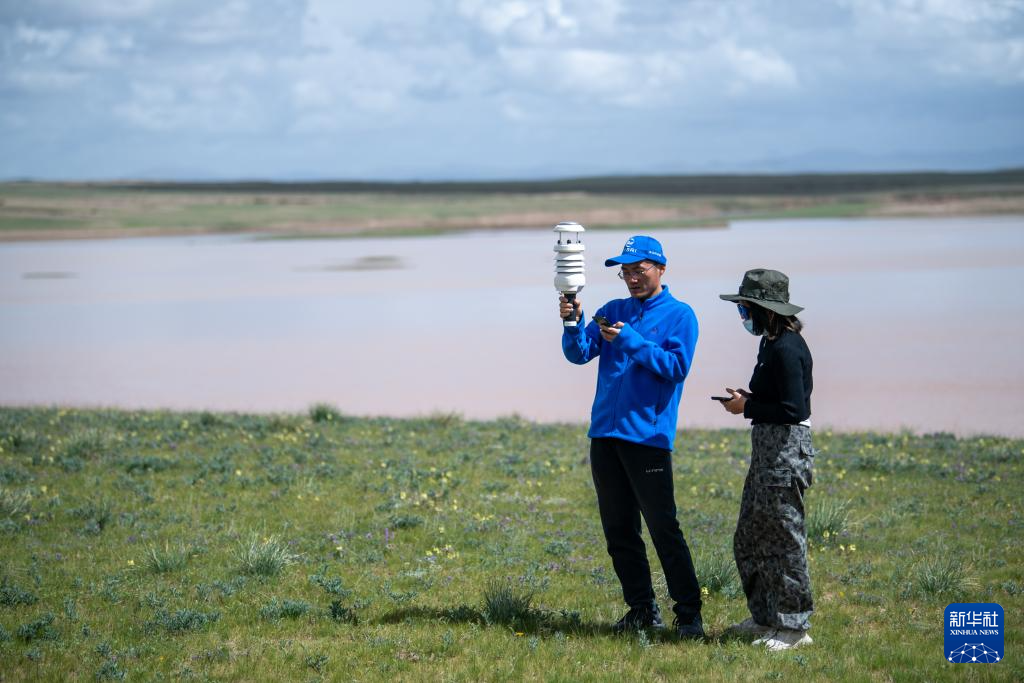 7月24日,在沱沱河唐古拉山鎮(zhèn)段,科考隊員在測量現(xiàn)場氣象條件。新華社記者 伍志尊 攝