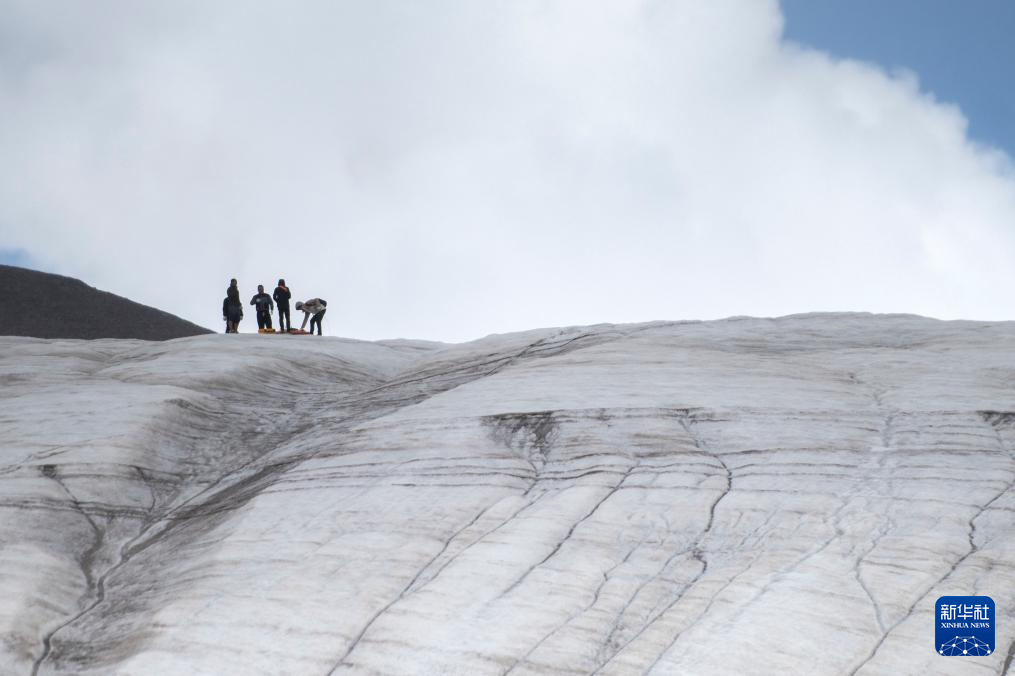 7月25日,在冬克瑪?shù)妆ǎ瓶缄爢T在進行冰川厚度探測及冰儲量匡算工作。新華社記者 伍志尊 攝