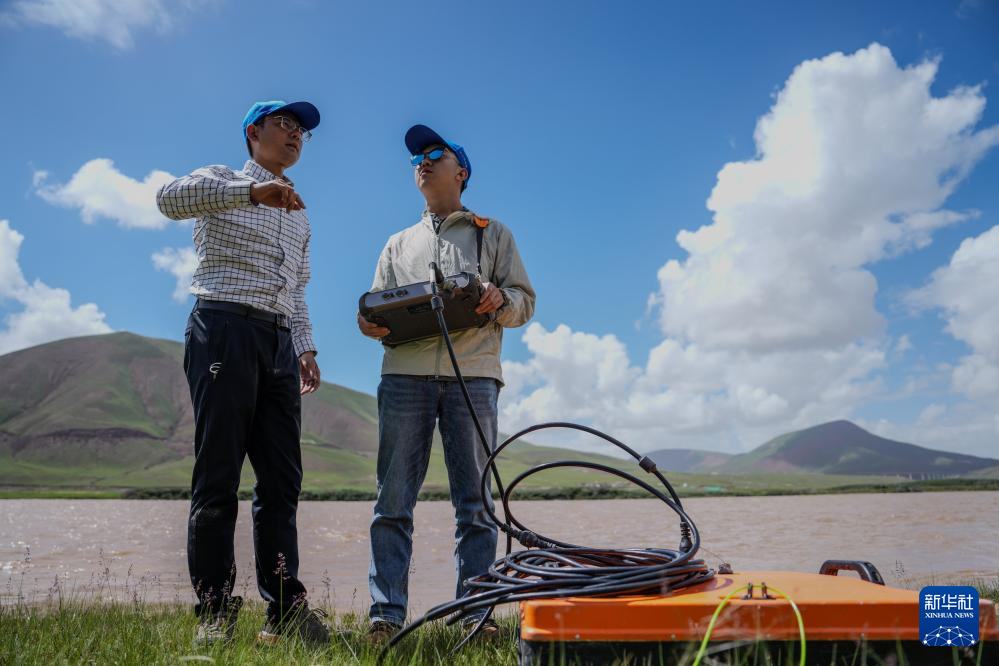 7月24日,科考隊員在通天河科欠曲進行地下水水位測量。新華社記者 潘彬彬 攝