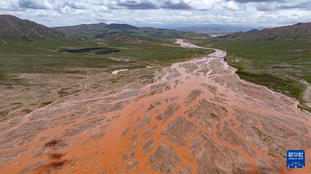 這是7月24日拍攝的通天河支流辮狀水系(無人機照片)。新華社記者 潘彬彬 攝