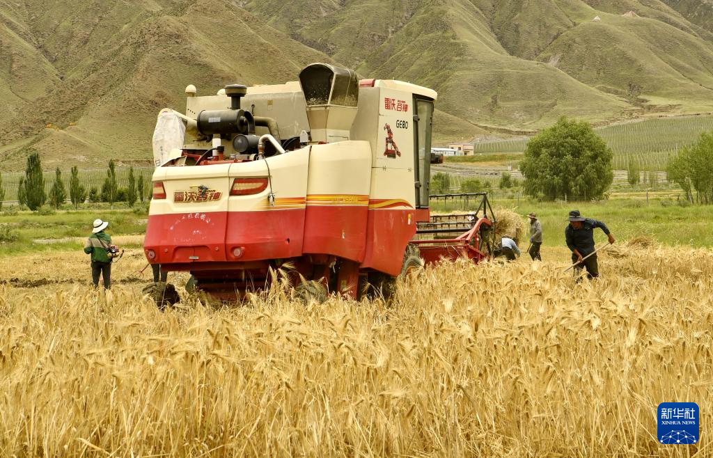 7月31日,山南市扎囊縣扎其鄉朗賽嶺村村民在收割青稞。新華社記者 張汝鋒 攝