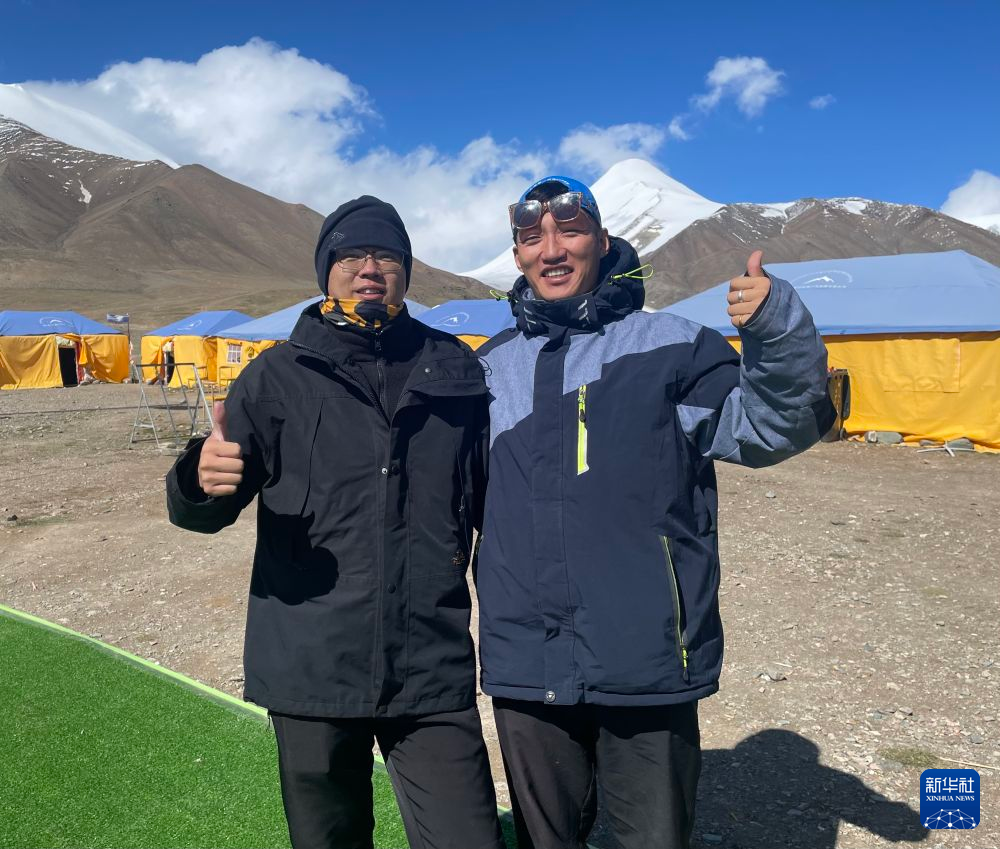 8月8日,熊警(左)和方源達在玉珠峰登山大本營。新華社記者 李琳海 攝