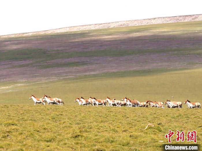 圖為成群藏野驢結(jié)伴而行。才新木加 攝