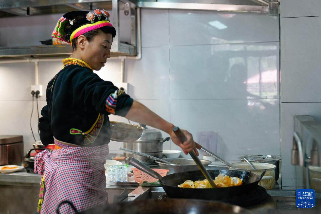 10月8日,能卡曼在藏家樂為游客準備午餐。新華社記者 胥冰潔 攝