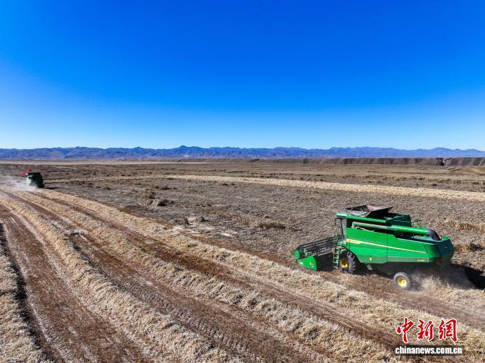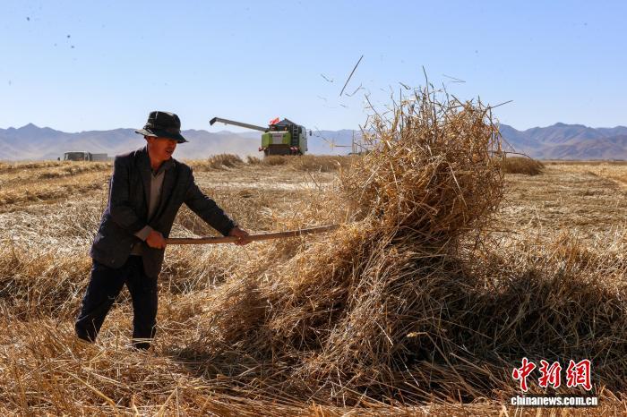 中國藏族網通訊 10月15日,青海省海南藏族自治州貴南縣種植的萬畝小麥進入收割季。近年來,該縣推廣優良品種與機械化作業,為秋糧穩產豐收提供了堅實保障。