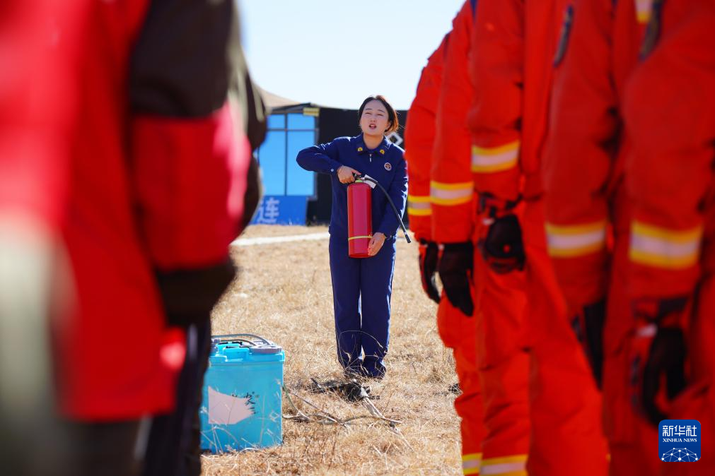 11月8日,在青海省海北藏族自治州祁連縣阿咪東索林區,祁連縣消防救援大隊消防宣傳員為當地護林員進行技能培訓。新華社記者 齊芷玥 攝